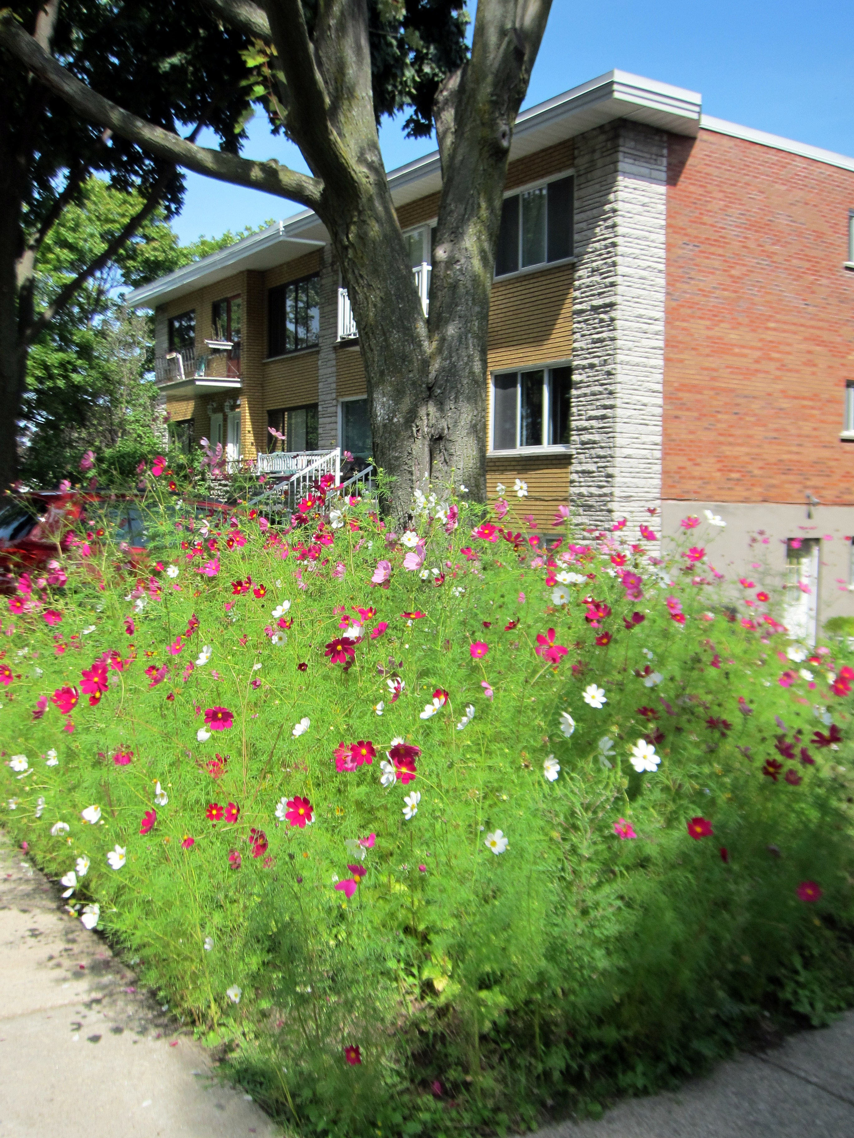 There have been moments, of course. For instance, the pleasure of witnessing a couple of teenage girls sitting on a high school bench, one of them – the one with the curly hair – laughing with such abandon that her feet leave the ground as she almost tumbles backwards. And I get to play peek-a-boo with a suspicious resident spying on me through her living room window, her head peering around the curtain. I wave and smile. Caught in the act, she tepidly waves back. Amidst a neighbourhood where the homes tend towards uniformity, and the prevailing noise is that of a lawn mower and the drone of traffic from Cote Vertu, I occasionally encounter declarations of individuality: