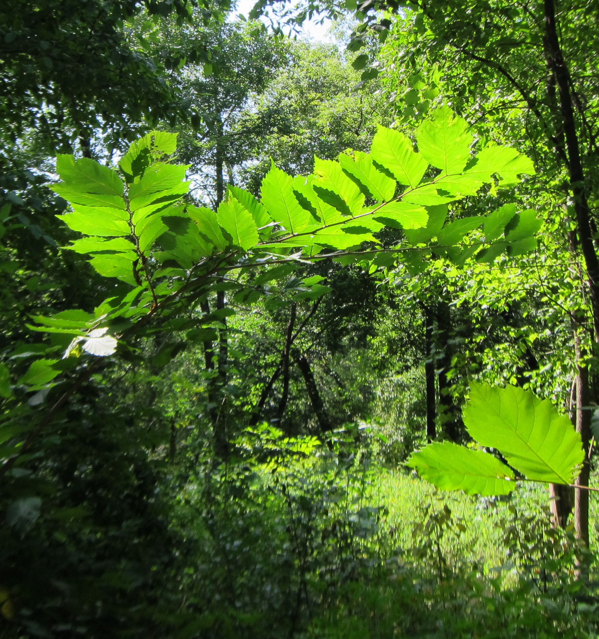 Almost as soon as I start out through the woods, the path I’m on leads to a construction site, beside which teenage boys are kicking around a ball and bouncing Frisbees off the side of a building. I turn back to the woods, and construction noise follows. This is too urban. Or maybe it’s not urban enough. That’s it. That’s the problem with this place. It’s too in-between. And even worse, it’s too hot. Then, almost in spite of myself, I recall a passage from Bhante Gunaratana’s Eight Mindful Steps to Happiness: